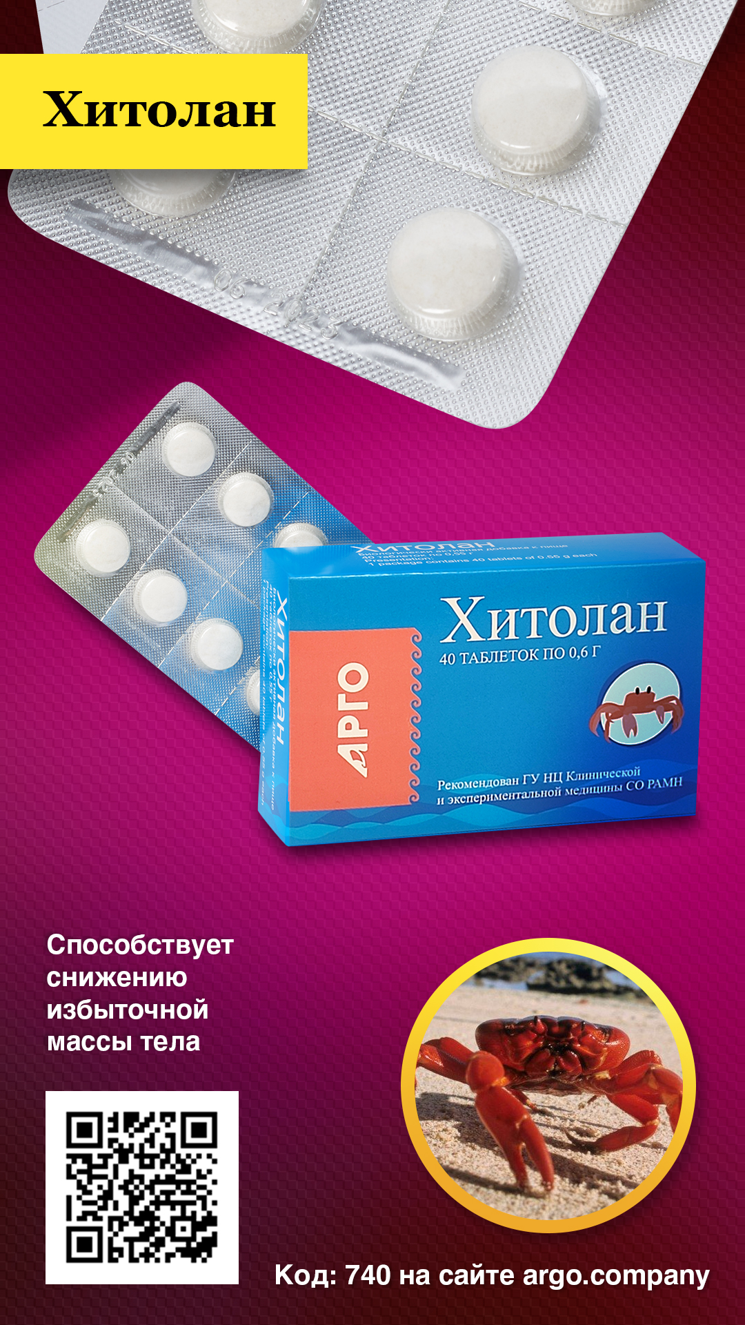 Хитозан. Вспомогательные вещества: лактоза