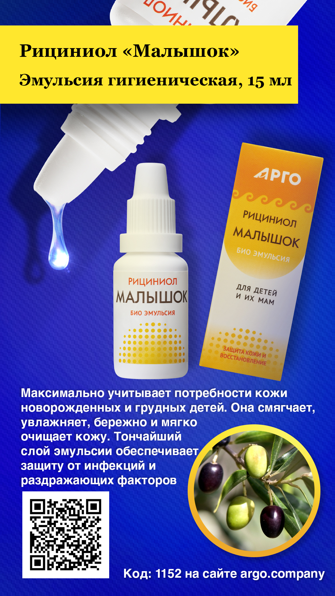 Благодаря уникальным составу и структуре, эмульсия «Малышок» максимально учитывает потребности кожи новорожденных и грудных детей. Она смягчает, увлажняет, бережно и мягко очищает кожу. Тончайший слой эмульсии обеспечивает защиту от инфекций и раздражающих факторов (сухой воздух, перепады температур, контакт с выделениями). Природные компоненты эмульсии обладают противовоспалительным, антисептическим действием, помогают быстро устранить зуд, красноту, раздражение, способствуют быстрому заживлению ранок, трещин и других повреждений, избавляют от дискомфорта.