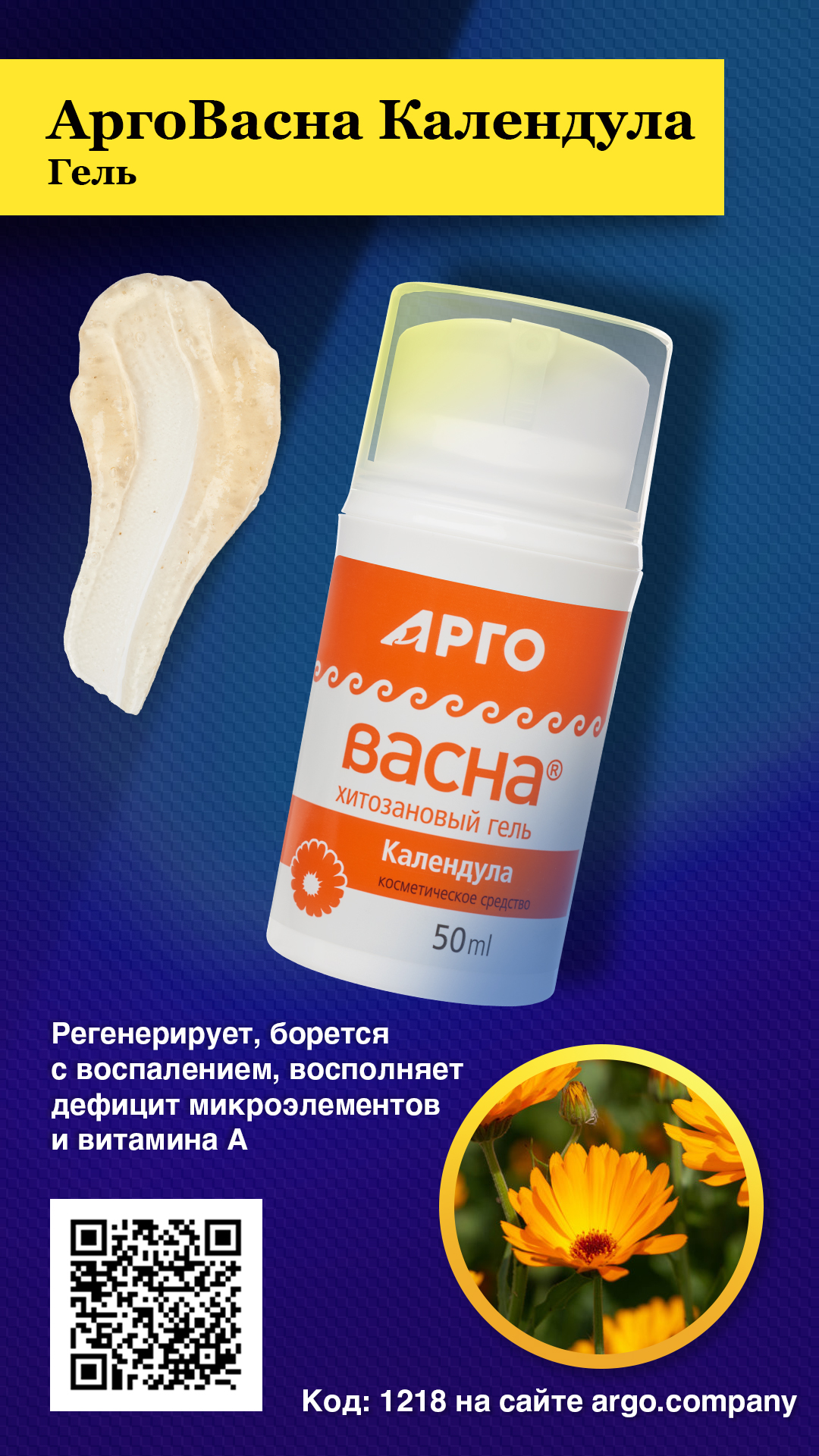 Регенерирующий заживляющий гель. Обладает выраженным противовоспалительным и антиоксидантным действием, восполняет дефицит микроэлементов и витамина А.