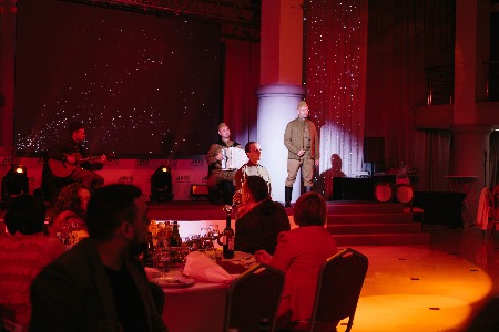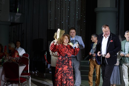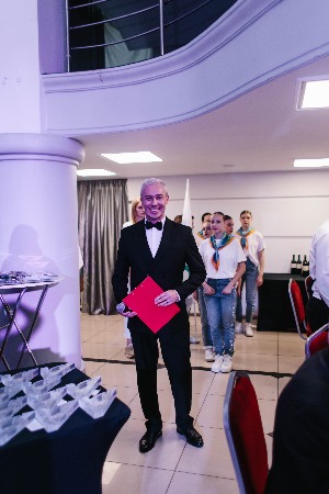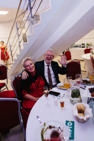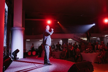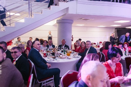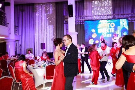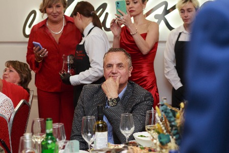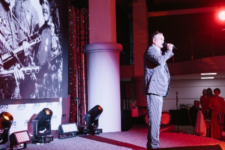 Но это была только прелюдия к главному событию вечера. В белом зале уже были накрыты столы, а ведущий Дмитрий Локтин ждал гостей.