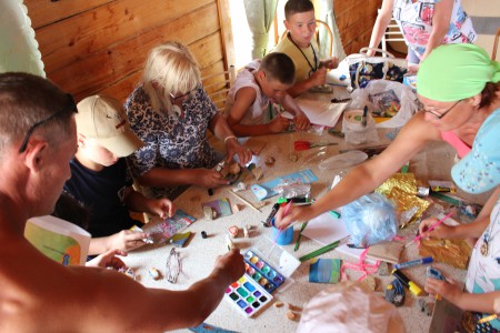 5-й день. Инга Егорова организовала творческую мастерскую для детей, но через некоторое время не выдержали и взрослые с завистью наблюдающие за творчеством ребятишек и тоже подключились