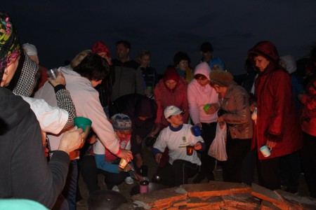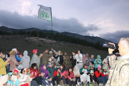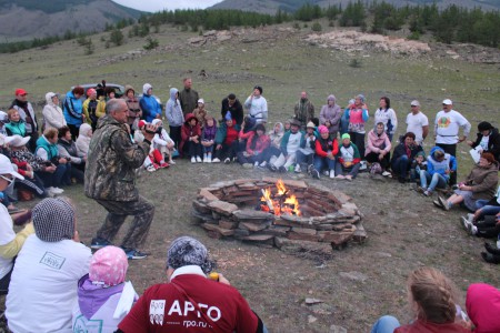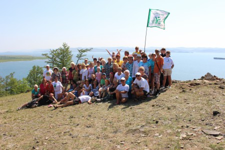И вот уже утро 14 июля, мы первый день на Байкале. Нас 32 человека с автопробега, и мы встречаем еще 80 человек, которые ехали поездом и сейчас добираются до нашей базы на автобусах. После обеда расселение, знакомство с Байкалом и расписанием на неделю. А вечером традиционный вечер у костра с определенным ритуалом и глинтвейном. И конечно же поднимаем флаг Движения «За сбережение народа» в знак открытия экологического лагеря.