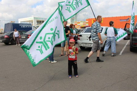 Первая остановка автопробега на ночлег была в Красноярске. Нас встретили Равшан и Ольга Байгановы. Они нас разместили на своей даче, баньку истопили и спать уложили. Выражаем им огромную благодарность от всех участников автопробега. Это настоящие аргонавты с широкой душой. Утром состоялась экскурсия автопробега по Красноярску с флагами Движения «За сбережение народа» и «АРГО».