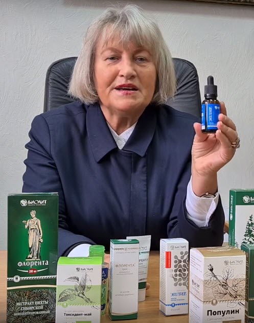 В.Н. Буркова: «Я бы к этому обязательно добавила Популин, в качестве фитосаниции и профилактики легочной пневмонии. Популин позволяет сохранить воздушность легочных альвеол, т.е. предупреждает образование фиброзной ткани. Самое главное последствие короновирусного гриппа (исследования проведены в институте туберкулеза РАН, г.Москва).